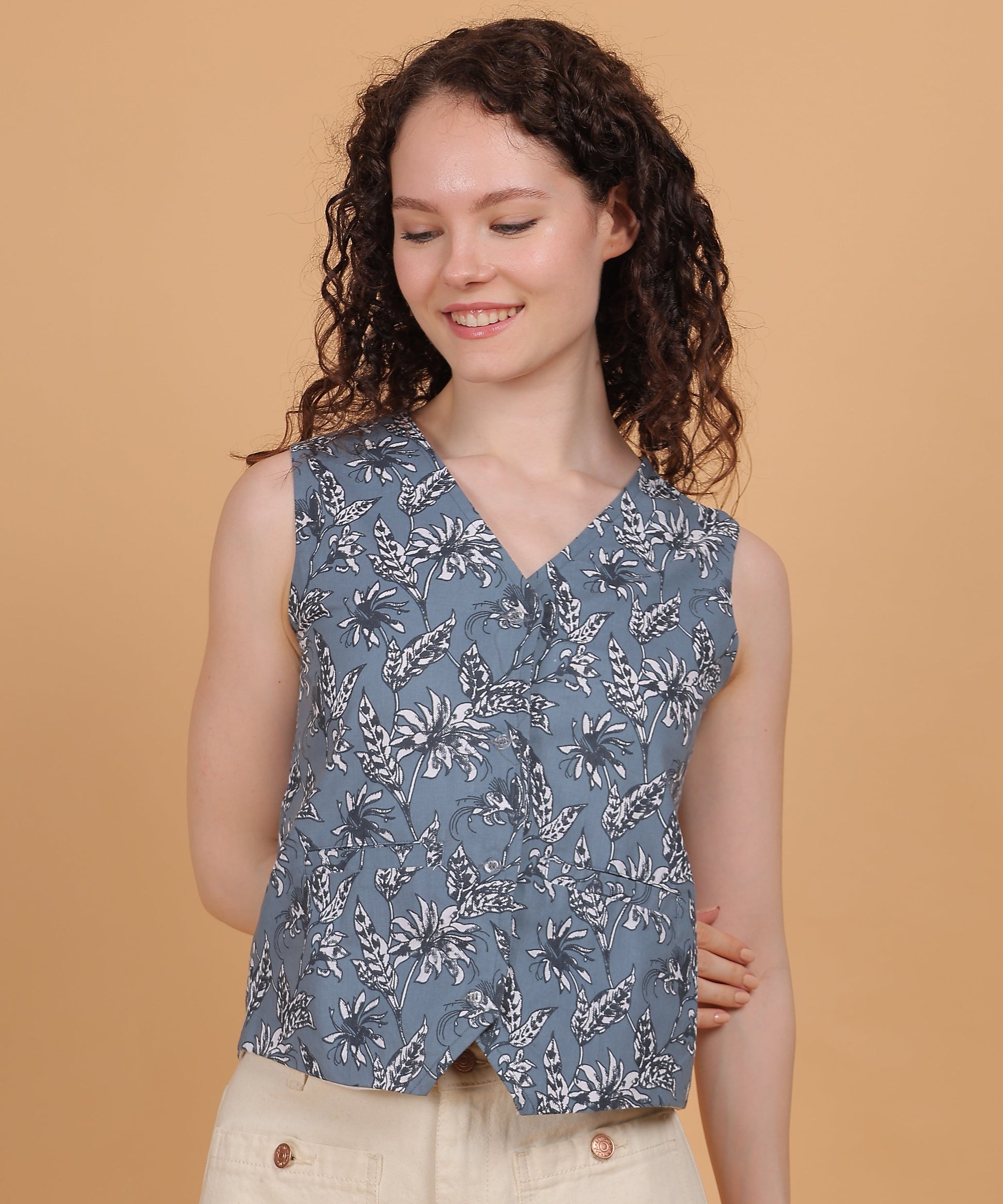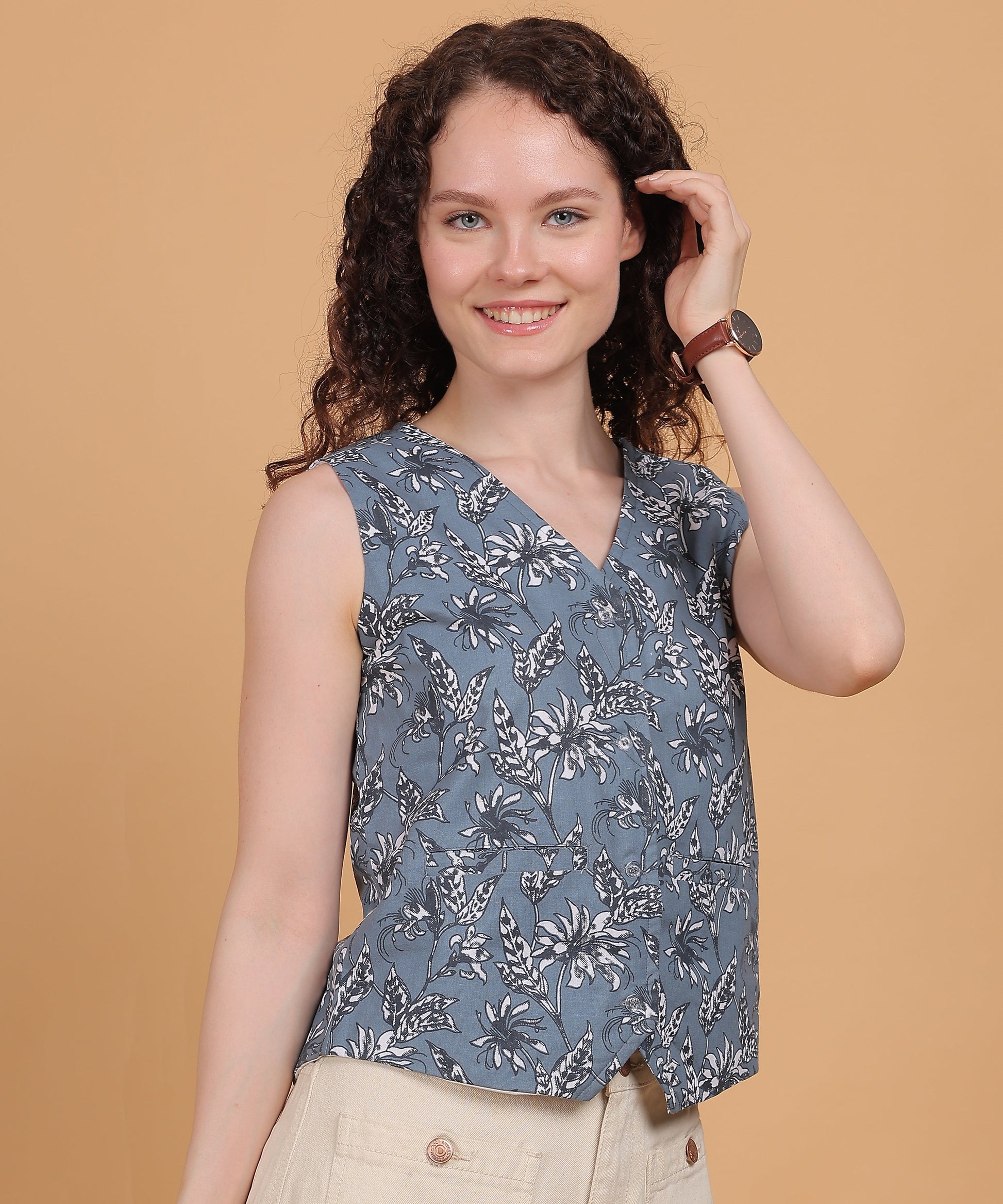 * Tailored silhouette with a flattering V-neck and curved hem